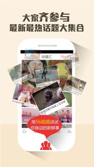 3、【热门话题】最新最热最贴近生活的话题汇,一键参与用视频表达观点,分享快乐与感动,用56视频讲述你身边的新鲜事;5、【智能下载】离线观看功能,高速缓存视频,支持后台、锁屏下载。海量视频带着走,再也不用纠结流量;