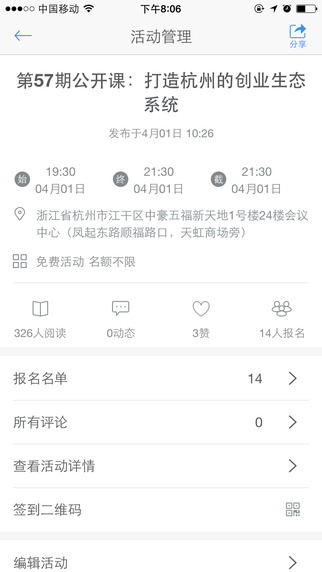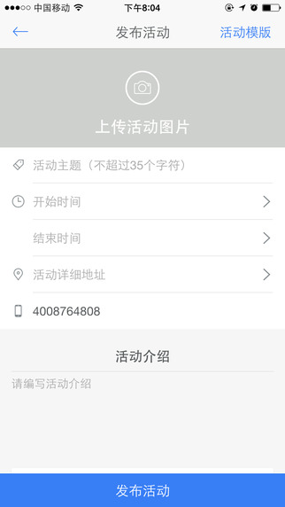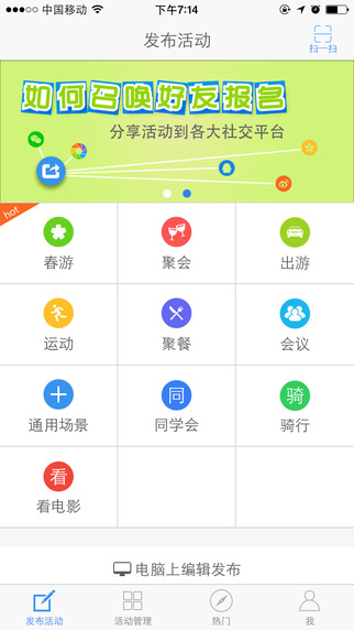 - 快速发起活动,发布并分享,是呼朋唤友之神器;