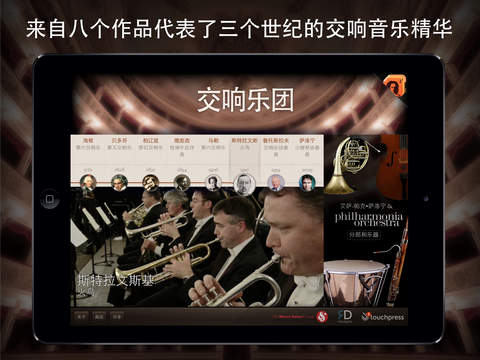 交响乐团ios版是一款音乐应用软件,它将带领你体验古典音乐之美,你将倾响Esa-Pekka Salonen指挥下的爱乐乐团演奏近三个世纪以来的八个交响乐代表作品。