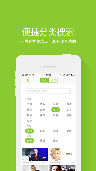 1.素材丰富:火爆的国际大片、最喜欢的英文歌、追了很久的动漫、英美剧,多类型丰富的视频素材,应有尽有!离线配音、离线合成,随时随地玩转配音!