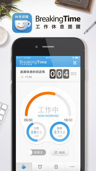 1、每日作息:输入上下班和休息规划,每天自动提醒你休息时间;