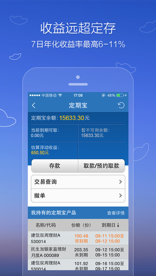 定期宝是一款基金交易移动端,这款软件会像投资者提供专业的数据,还有净值、数据、评级、分析、互动等等全方面的理财服务,作为中国基金理财网站第一门户,致力向投资者提供专业、及时、全面的基金交易、资讯、净值、数据、评级、分析、互动等全面理财服务。