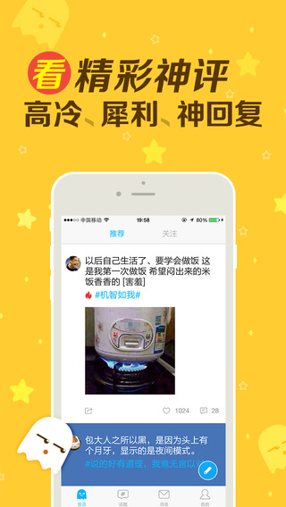 1.最快看到最新、最犀利、笑到抽筋的神评论神回复。