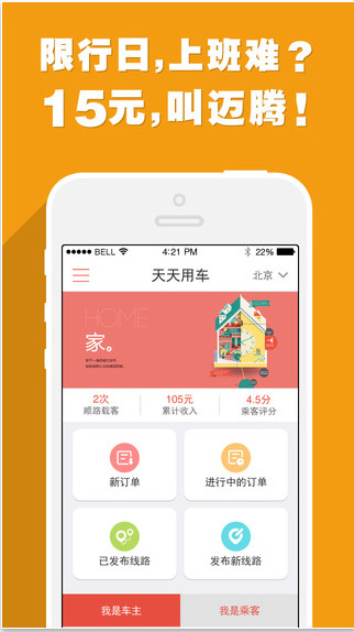 天天用车是一款智能、友爱的社会化车辆合乘软件;