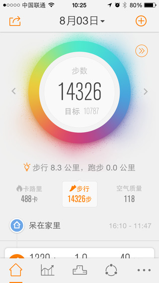 你可能知道每天的 PM2.5 浓度了,可是你知道你每天吸入了多少 PM2.5 么?PM2.5 的吸入量跟我们的运动量和户外暴露时间直接相关。乐动力可以为你估算每日 PM2.5 吸入量,这简直是现代都市生活必备信息啊,有木有?