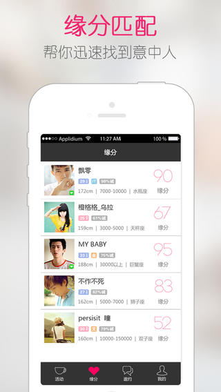 缘见手机客户端是款同城交友软件,单身伙伴必备神器,各种线下活动,在线上遇到喜欢的兴趣相同的伙伴们想见面就可直接约到线下活动中!