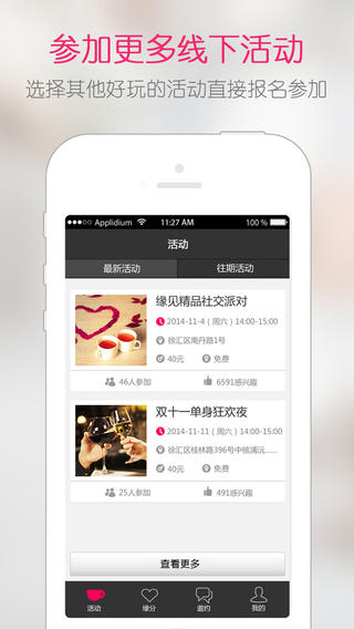 可以选择喜欢的线下活动直接报名参加,每周都有各种单身活动,可随时关注活动动态,看到哪场有你的菜出现立刻向TA抛去橄榄枝!