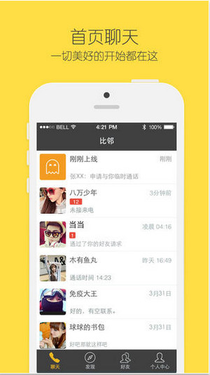 比邻是一款电话社交平台APP,是一个刺激年轻人心跳的社交工具。主要通过即时通话,随时畅聊你感兴趣的话题,并且可以通过精彩的图片和文字分享生活中的美好点滴,也可以欣赏其它用户个性十足的个人资料和生活相册。 软件功能: