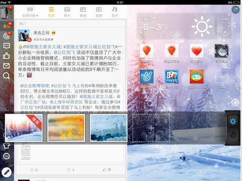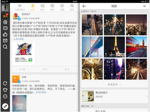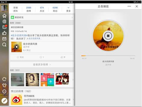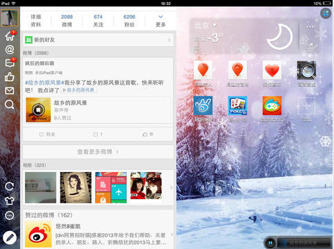 IPAD新浪微博HD2高清客户端,微博HD是新浪公司专为ipad用户量身打造的微博客户端,享受iPad独有的大屏触控体验,集阅读、发布、评论、转发、私信、关注等主要功能为一体,随时随地同朋友分享身边的新鲜事。