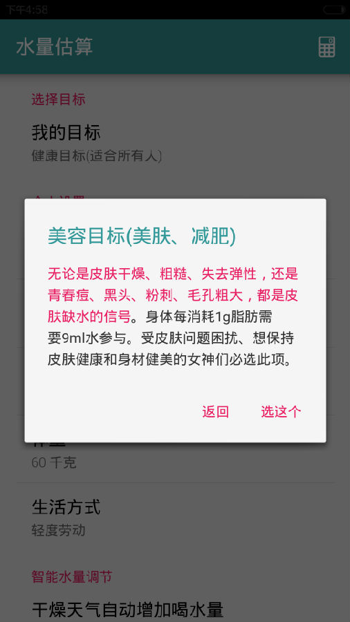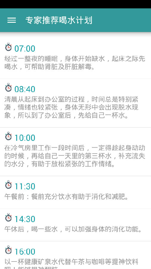 喝水是调节身体循环功能最普通容易的方法,每天喝适量的水可以保证身体健康肠道通畅,喝水时间不仅仅是提醒用户喝水,还可以帮助用户制定属于自己的喝水计划,用有效的方法来喝水效果更甚。