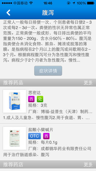 药品筛选是难题!“药品搜索”提供详细的海量药品说明,“中西药材”助您找到合适的药材。身体自检很必要!