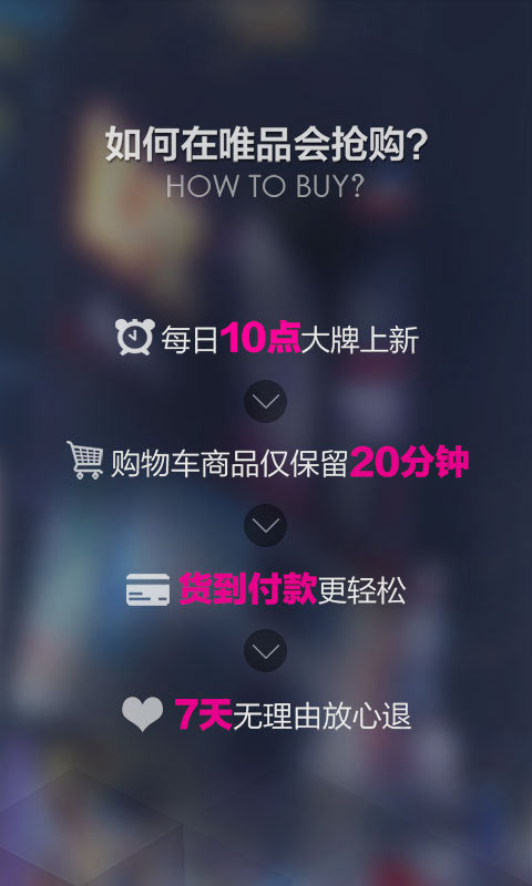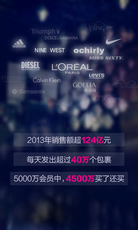 唯品会,一家专门做特卖的网站,专业买手把脉潮流热点,轻松打造女神范&有型男,你手中的网购神器!