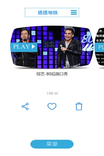 搭搭地铁,每天提供三部短片,影片会在Wi-Fi条件下自动下载,对于大城市的上班族,可以在地铁上离线看短片,充分利用碎片时间,享受精彩短片,不费流量;阅后即焚,不浪费手机存储空间.