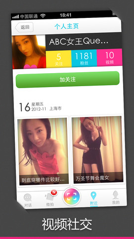 微拍可以让你通过男女、远近和热度找到更多有趣的人和好玩的视频。