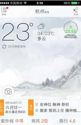天气准确、更新快、含PM2.5及天气预警、覆盖城市广。 黄历专业、解释详尽,参考大量古典书籍,结合八字、周易、紫微斗数、奇门遁甲等命理元素,借由现代科学算法进行测算。测算结果精准、简单明了、易懂。为您的事业、爱情、运势、风水提供解惑和指导帮助。