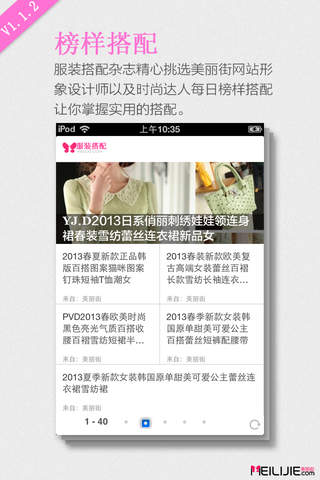 服装搭配杂志精心挑选美丽街网站形象设计师以及时尚达人每日榜样搭配,让你 掌握最实用的搭配。