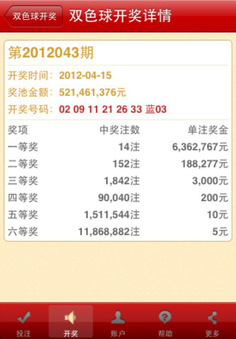 5、开奖查询:可以随时随地查询开奖。不受时间地域的限制。