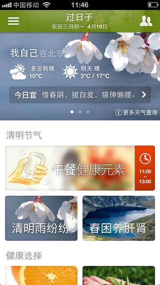 * 中午打开过日子,你可以使用摇一摇功能,摇出你的午餐健康元素。
