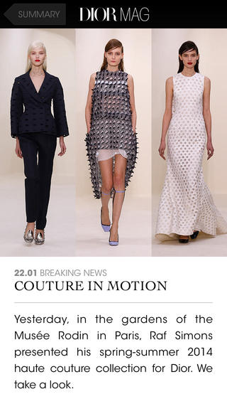 使用Dior迪奥iPhone应用程序, 及时掌握Dior流行资讯: 观赏最新时装秀视频和海量电影。 得到专属个人妆容定制方案,令您愈加美丽,更能得到Dior迪奥彩妆师团队提供的专业建议。
