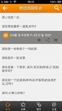 如交通、问候、银行、购物、娱乐、餐饮等,每条语句点击即可发音,简单方便。