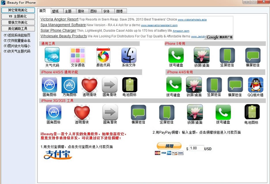 iBeauty是一款非常简单实用的美化软件,用它可以一键修改运营图标锁屏字体滑块图标以及锁屏背景透明修改系统铃声,有了它不用自己麻烦的寻找替换路径,让它一键帮你搞定。正常运行电脑需要装Microsoft .NET Framework 4。
