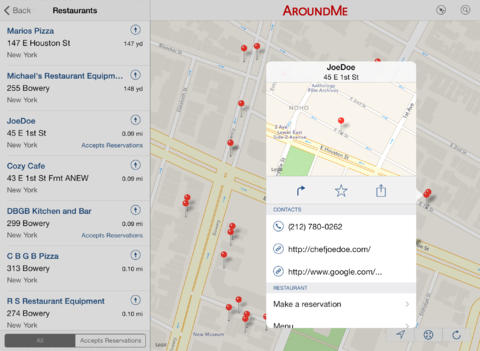 AroundMe显示所有在你拍了拍以及来自你在哪里远处类业务的完整列表。