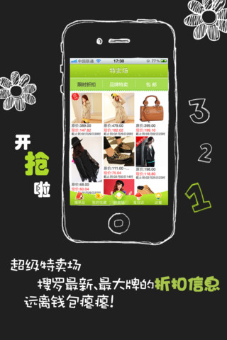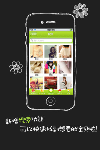 2.优惠区:淘宝贝为除了您节省流量,还会照顾到爱美的你的钱包哦,同样的潮品,优惠区为您挑选最划算的商品,限时折扣,包邮,品牌特卖,心动就马上行动吧!