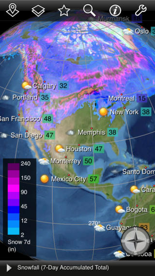 可以查看全球的城市天气情况