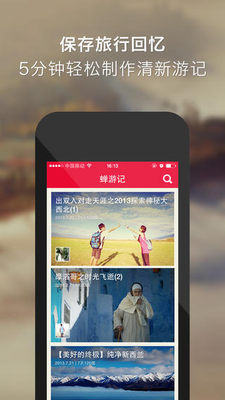 轻松整理你的旅行相片,制作清新游记,最快只需要5分钟时间。游记以独创的卡片格式添加内容,自由排序,并支持强大的离线操作——你甚至可以在飞行模式下写完一篇游记。