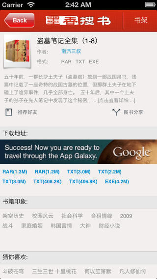 墨香搜书是由专业团队打造的一款优秀的手机图书/小说搜索、下载和阅读工具。