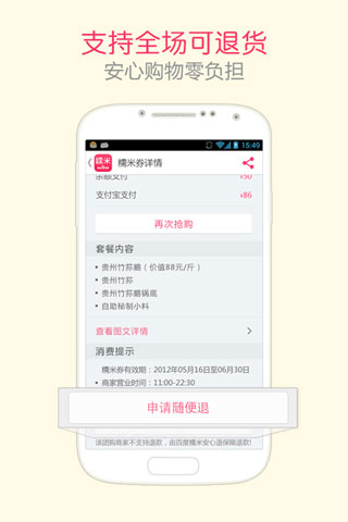 退款:没空去消费不要紧,手机随时随地一键轻松申请退款;
