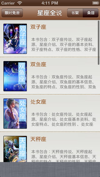 星座全书包含12个星座的定义、特点、所处日期、各个星座的人如何相处,星座与社交、星座与爱情、星座与人生、星座与心理、星座与性格等。