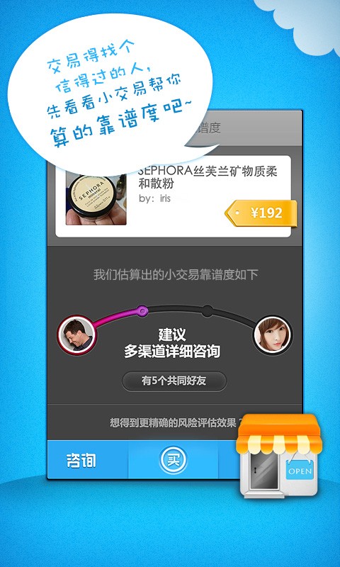 小交易,“会说话”的好友邻里买卖交换服务。 就是这么简单,拍张照,说句话,买卖、交换分分钟轻松搞定~ 这里有朋友自己的闲置,有邻里的亲口描述,靠谱无需犹豫~ 你求,我有,小交易一下,TA就是你的了~ 陌生人交易保障计划让交易刚放心~ 快捷发布、迅速变现、真实内容,最棒的好友邻里买卖交换服务~