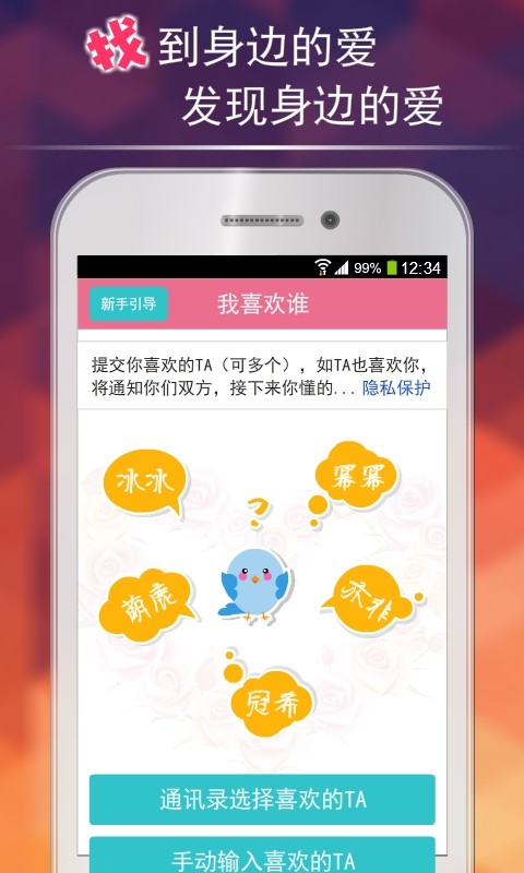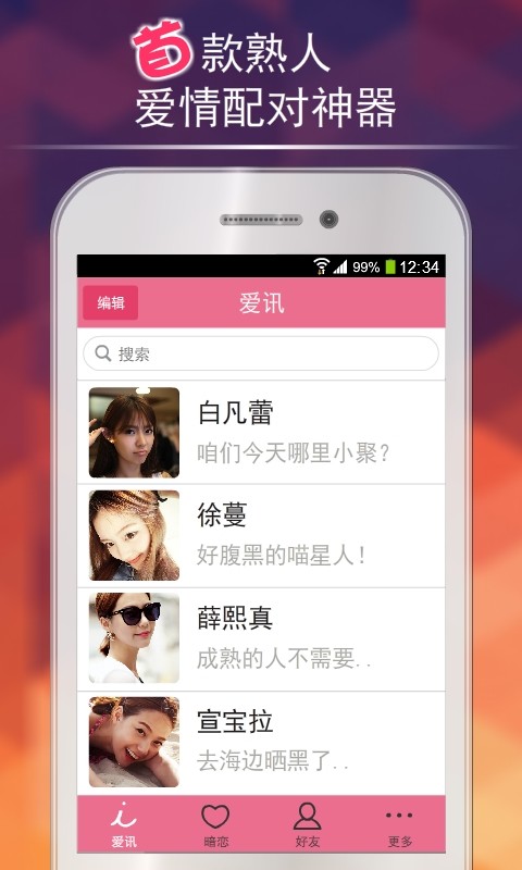 爱讯是国内第一款熟人之间的爱情配对神器,可以帮你找到身边的爱,发现身边的爱。