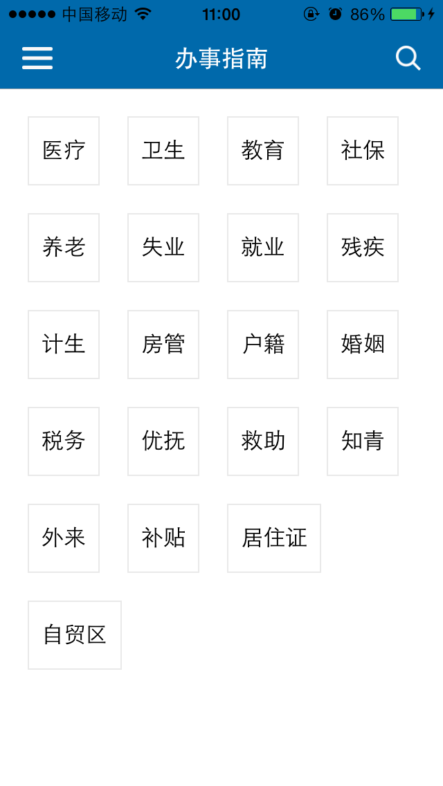 【办事指南】医疗、教育、社保、养老、失业、就业、残疾、计生、房管、户籍、婚姻、税务、优抚、救助、知青、外来、居住证、自贸区...分类明晰,随手查询!