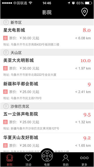 2.GPS定位附近影院,查询其影片场次、路线;