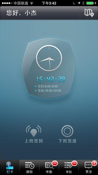 1.在线考勤管理功能,可以为企业HR和部门主管提供在线的考勤管理。