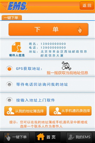 可以使用GPS来获取当前地址作为寄件地址