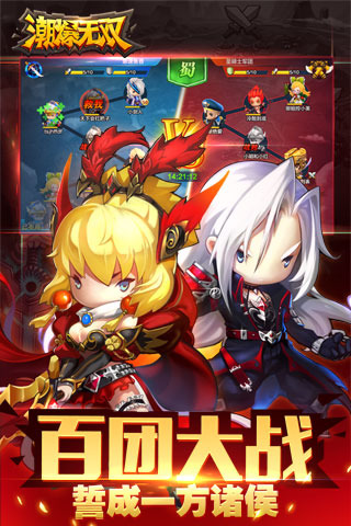 《潮爆无双》是年度“潮派”动作卡牌创新大作!谁说三国只有魏蜀吴?在这里,墨家和司马懿才是主角!谁说三国人物只能老气横秋?在这里,许禇纹着霸天虎、张角穿着钢铁侠、谷歌眼镜配着曹操,霸气、新奇还很酷![ 极致潮范,颠覆想像!《潮爆无双》在经典三国的基础上进行了大胆画面创新和玩法创新,重金相邀韩国顶级画师以“潮”式画风重塑三国人物形象,完美融合策略乐趣与操控快感,深度唤醒玩家身为三国时代一城之主。