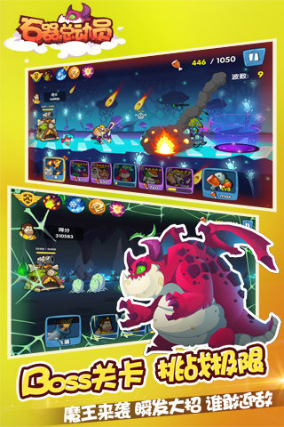 全球首款1V1实时在线双路塔防竞技PK手游5月18日11时与您相约是石器时代!《石器总动员》创造了一种全新的集合对战、塔防、卡牌等多种元素的策略卡牌玩法。1. 超过300位Q萌野兽原始人伴你左右,轻松闯关打Boss!2.实时在线1V1,随机应变登王者! 3.组团副本部落战,重新定义只属于你的石器时代!