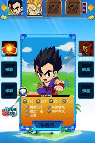 《变身吧悟饭》是一款龙珠风格精品的游戏,画面精美,游戏系统丰富有趣,战斗模式独特。拥有完美的伙伴培养系统,新颖的羁绊设定,精彩绝伦的技能,热血带感的战斗,游戏中玩家通过收集卡牌,并通过装备,奥义,技能等加成培养强大自己的卡牌,加上战斗排位,能让玩家体验到淋漓尽致的战斗快感,加上三轮对战模式,以及技能触发的动画式战斗,在真实还原原版动画场景的同时,带给玩家最酷最爽的游戏体验。