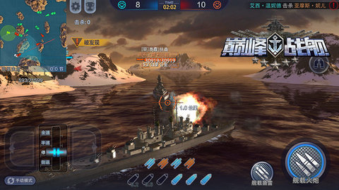 《巅峰战舰》为玩家提供了自动与手动两种操作模式,自动模式中舰船将会随着玩家设定的方向前进,玩家可以将更多精力放在对手身上,而手动模式是为更加追求操作和个性化的船长准备的,操作过程较自动模式更为复杂,需要兼顾方向、瞄准、开炮等操作元素,但是随之而来的好处是玩家对战舰的控制更加细致,在混战中可以带来巨大的优势。