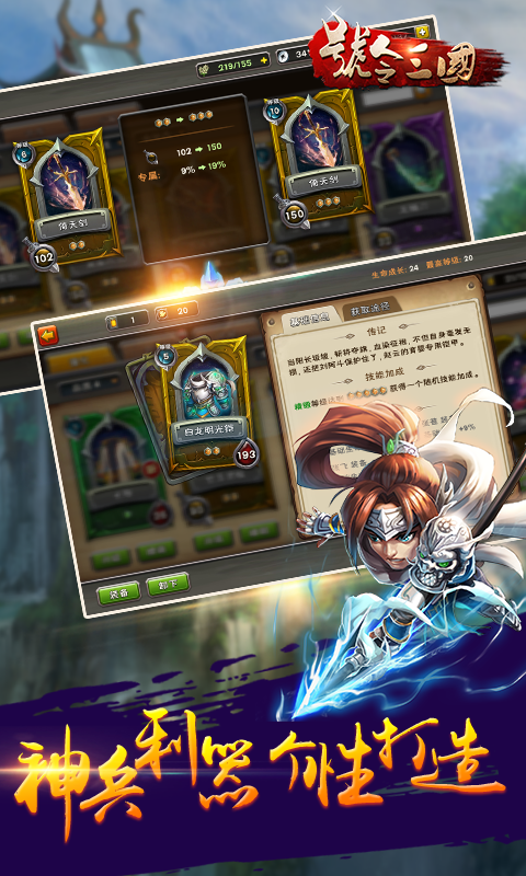 数百名魏蜀吴群雄武将任您选择,士兵卡、战马卡、兵书卡助您绝地逆袭!