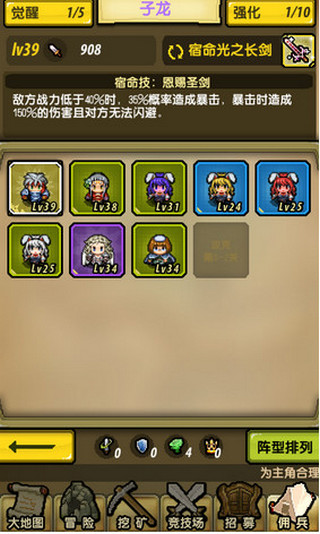 在《冒险与挖矿》游戏中,不同的英雄组合拥有不同的宿命合技,玩家需要不断挑战、收集,培养自己的冒险小队,完成游戏中的各种挑战!游戏内有多达一百余个地图,三百多英雄,并且这些英雄均来自你熟悉的人物,如顽皮的悟空酱、无敌的吕布桑,还是那个形象,还是那个感觉,拾取你散落的回忆,重温昔日的感动。
