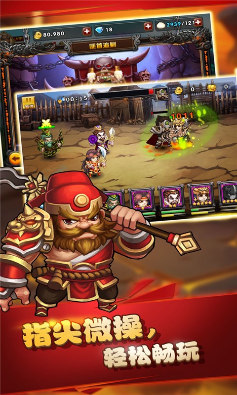 60个三国时期著名武将,5大品质,5大星级,多类型武将等待玩家来探索收集,策略养成将助你一臂之力讨伐蛇魔!