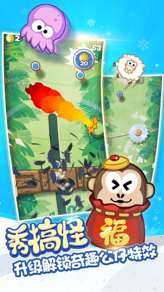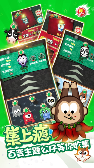 《弹弹猴》是一款通过指尖弹射,使萌物不断攀升的休闲手游。指尖调整弹射力度与方向,控制萌物不断上升,同时避开障碍,以收集更多的金币。玩法轻松休闲,节奏紧张抓人。新鲜竖版弹射玩法,无尽跑酷上手简单,丰富角色收集,呆萌明亮画风,还有舒缓解压的轻幽默!摇奖娃娃机等更添策略性与可玩性!
