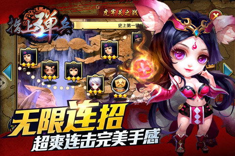 指上弹兵手游是一款3D动作弹球类RPG手游,游戏采用的是熟悉的三国题材,有着我们熟悉的人物,战斗模式采用的回合制,玩法是弹珠+桌球的创新玩法,来玩玩吧。画面非常华丽的三国题材的策略卡牌类RPG手游。游戏在原作基础上优化了用户界面,丰富了用户内容,增加了游戏场景和游戏模式,重置了游戏关卡,使游戏的趣味性和挑战性大大增加。全新玩法的RPG手游,在这里你就通过弹珠的游戏玩法来进行愉快的游戏,搞笑的人物造型,简单的游戏操作,创新的游戏玩法让你体验一个不一样的三国