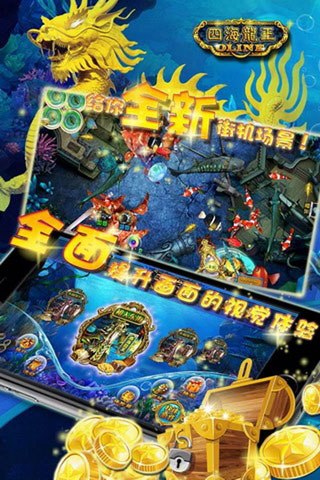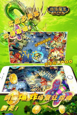 捕鱼四海龙王安卓版完美再现街机捕鱼游戏,重温经典。新增开宝箱和抽奖模式,各种道具、元宝让玩加爽到底,超神机甲,万孔炮台,玩的就是快感,全屏秒杀,锁定速射,玩的就是爽快,闯关任务,三星评价,玩的就是挑战。每一场赛事都不落下!上演渔乐盛宴,带着龙炮追着龙王打,真是痛快淋漓!上下班路上、课余时间、排队中、洗手间、公交上等,即可以打破无聊和沉闷,与亲朋好友、与来自不同海域的伙伴们畅游海底,又可以顺便赢来百万大奖!想什么时候玩就什么时候玩!赶紧来体验一下捕鱼的紧张和刺激,全屏的金币,都是满满的幸福!