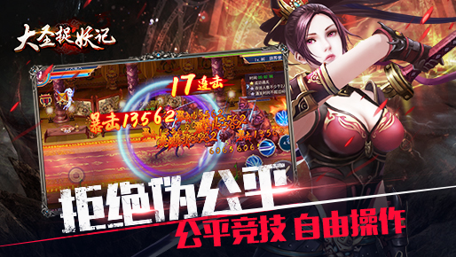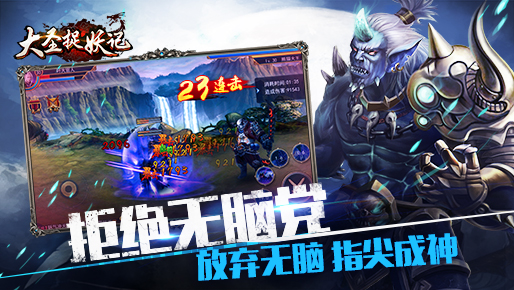 《大圣捉妖记》游戏模式重现经典街机游戏模式,采用虚拟摇杆配合和攻击键、技能键进行操控,良好的操作手感媲美格斗手柄,简单易操控的设计也使得玩家极易连招,通过不同技能的组合搭配,在《大圣捉妖记》中你可以体验到真实格斗的刺激爽快,闪转腾挪全靠指尖掌握。