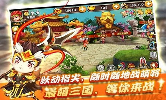 游戏以养成为主,收集为辅,提供众多养成方式供您选择,武将获取途径更多更容易。独特武将轮回变身,一骑当千英雄模式,策略布阵、即时战斗换位,清新Q版画风,真3D视角展示,带您畅游不一样的三国历史。